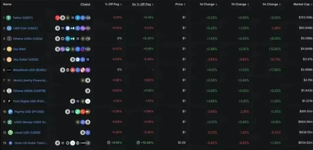 In addition to the two market giants, USDT and USDC, from the early days of the market, TrueUSD (TUSD), Circle Coin (USDC), Gemini Dollar (GUSD), and Paxos (PAX), to today’s still occupying a certain market, DAI (MakerDAO), USDS (Sky), USDe (Ethena), PYUS (PYUS), and PYUS (PYUS), the market for cryptocurrencies has been growing. Ethena), PYUSD (PayPal), RLUSD (Ripple), USD1 (WLFI) and other stablecoin projects, about this piece of lucrative “cake” competition is undoubtedly becoming increasingly fierce, and who can really stand invincible or become the ultimate winner, is still to be regulatory The test of policy and the verification of time.